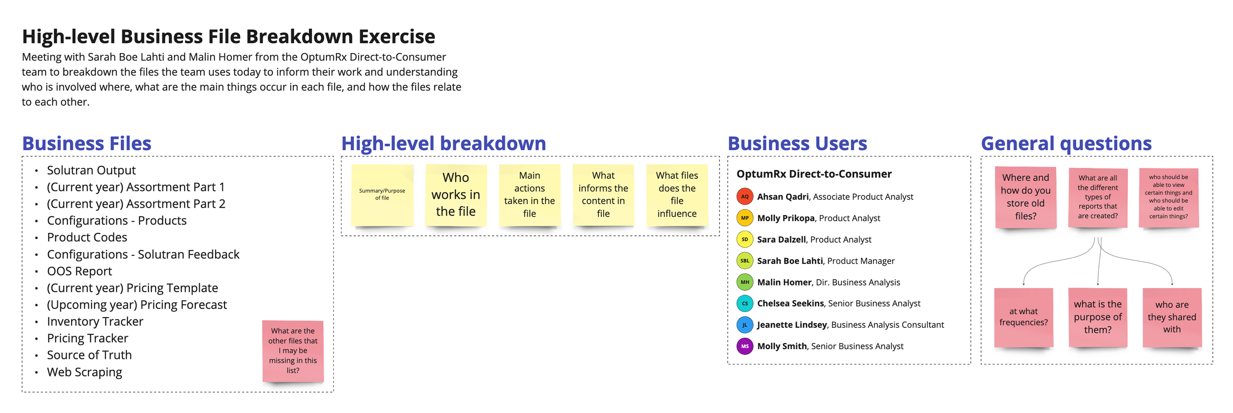 This is how I prepared the exercise to be presented and explained to the team to best gather information on each file and how it is used.